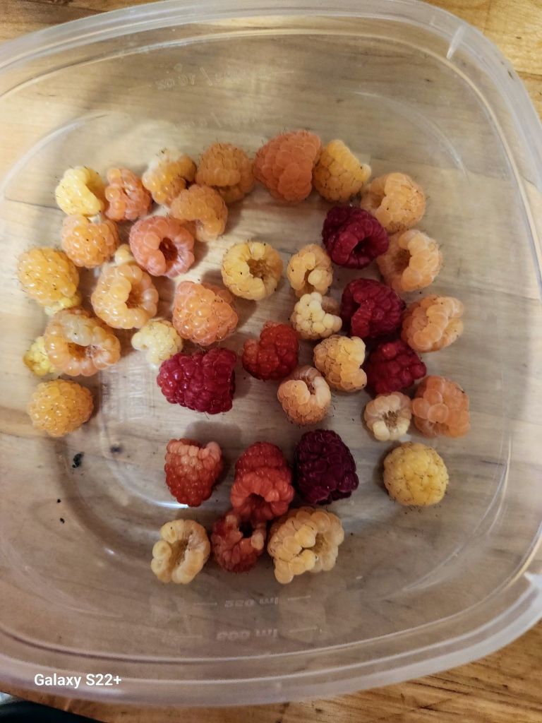 That was yesterday’s bounty, here’s what the bushes gave me this evening! It reminds me of growing up with a large raspberry patch in our backyard. It’s a treat to be growing some to enjoy with breakfast again!